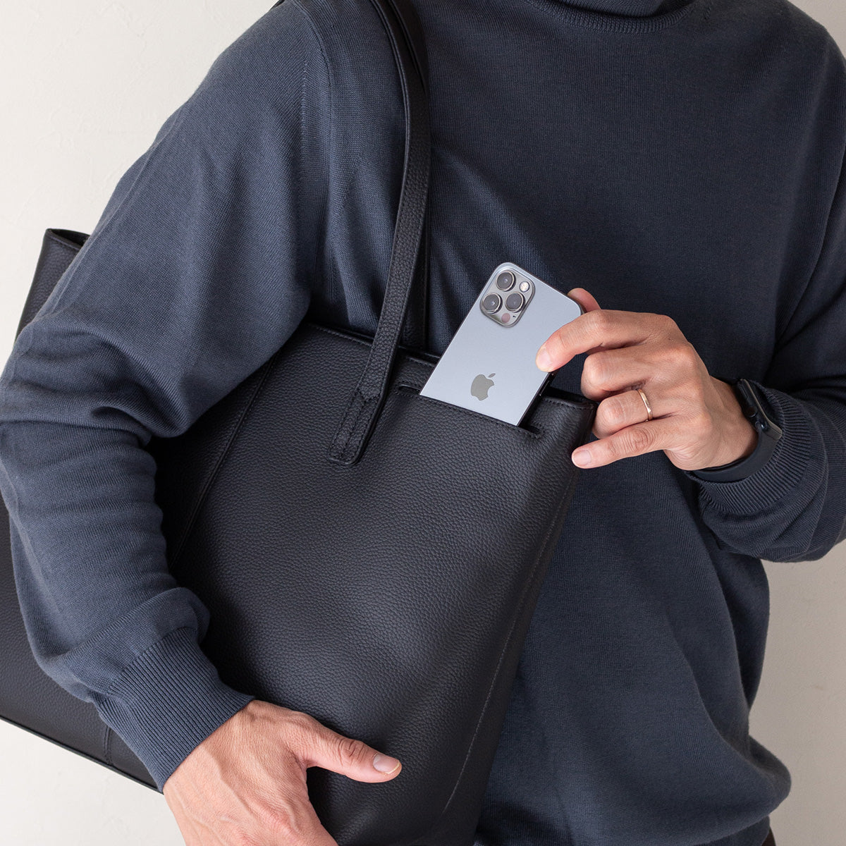 片手ですっとスマホを取り出せるので、バッグの中で探す手間もありません。